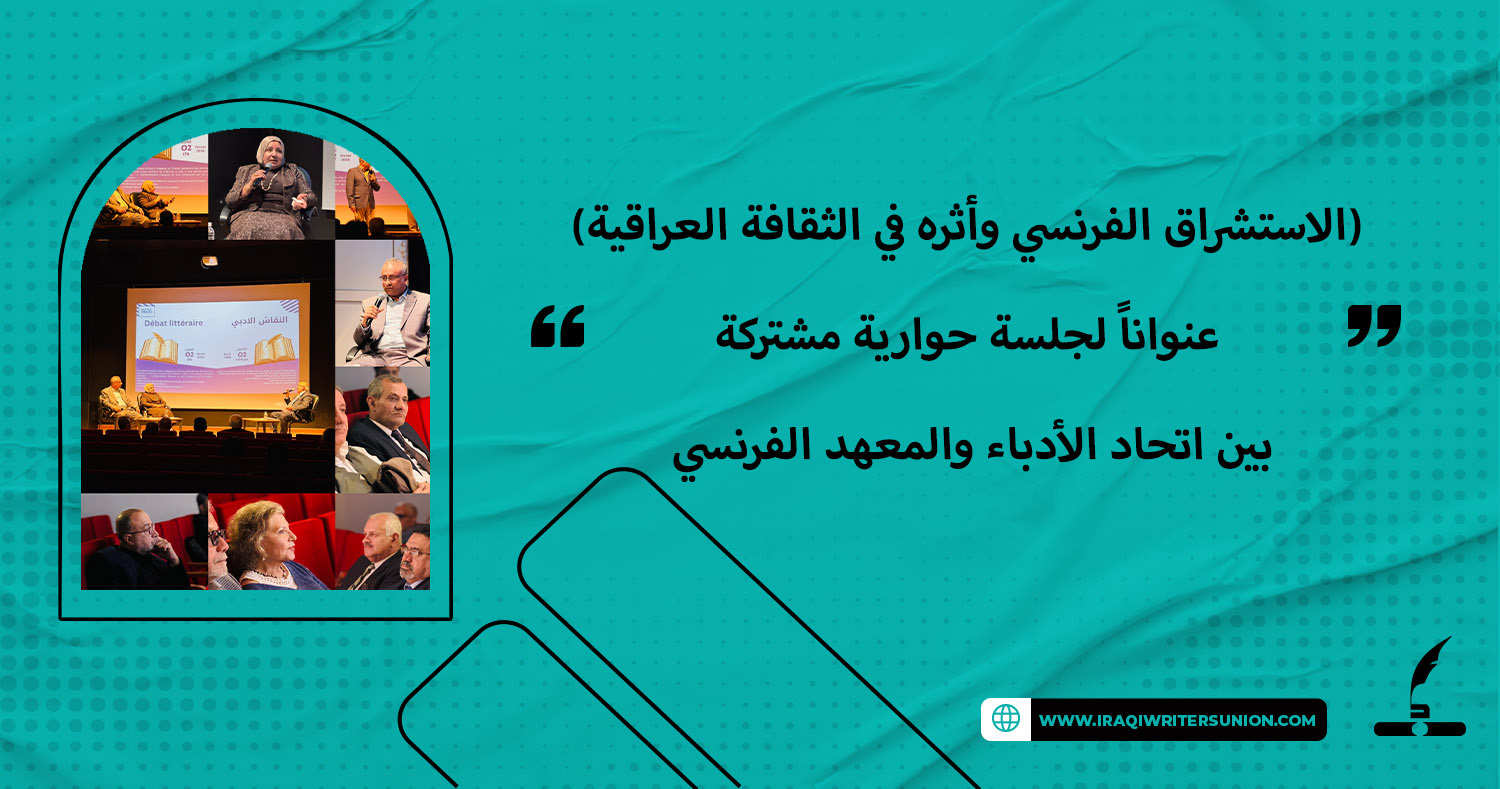 • (الاستشراق الفرنسي وأثره في الثقافة العراقية)عنواناً لجلسة حوارية مشتركة بين اتحاد الأدباء والمعهد الفرنسي