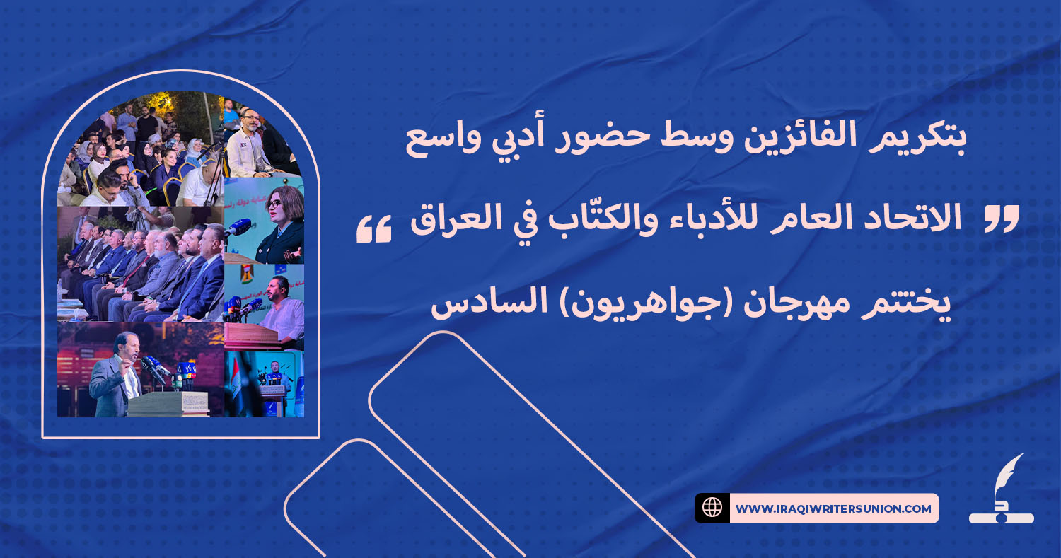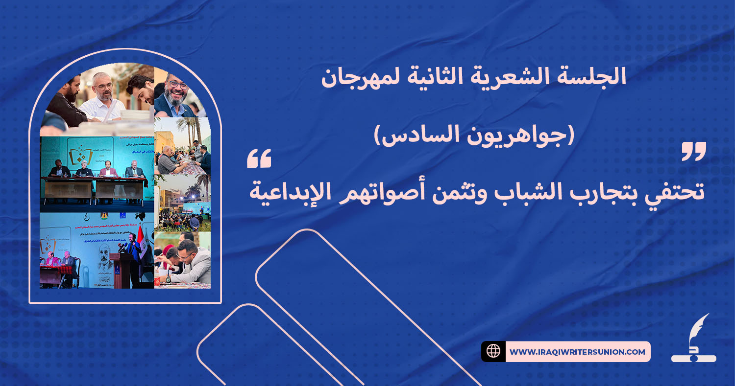 شهدت قاعة قرطبة في فندق المنصور ببغداد، اليوم الخميس ١٦ تشرين الأول ٢٠٢٥، افتتاح فعاليات مهرجان (جواهريون) للشعراء الشباب في دورته السادسة، مترافقاً مع تكريم الفائزين بمسابقة الأدباء الشباب التي أُعلن عن نتائجها سابقاً. وجاء حفل افتتاح المهرجان الذي أقامه الاتحاد العام للأدباء والكتّاب في العراق برعاية دولة رئيس الوزراء المهندس محمد شياع السوداني المحترم، وبالتعاون مع وزارة الثقافة والسياحة والآثار ومنظمة نخيل عراقي الثقافية، وبحضور عدد من الشخصيات السياسية والثقافية والأدبية من عموم محافظات الوطن.